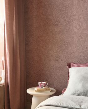 Altrosa glatte Vliestapete mit Blumenmuster.