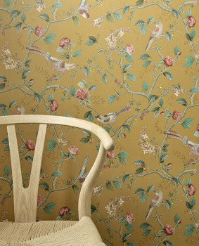 Ockerfarbene Tapete mit Vögeln und Zweigen, 333125 Pip Studio 6, Eijffinger