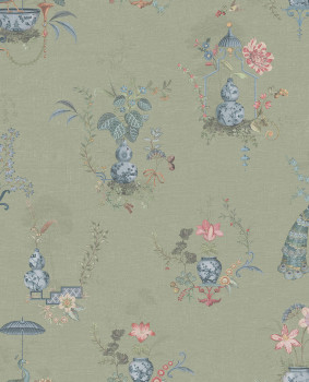 Grüne Tapete mit Blumen und Pfauen, 333142 Pip Studio 6, Eijffinger