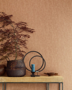 Rosa-braune Vliestapete, deren Textur an die Struktur eines Stoffes erinnert, dezentes metallisches Silber, gestromter Hintergrund.