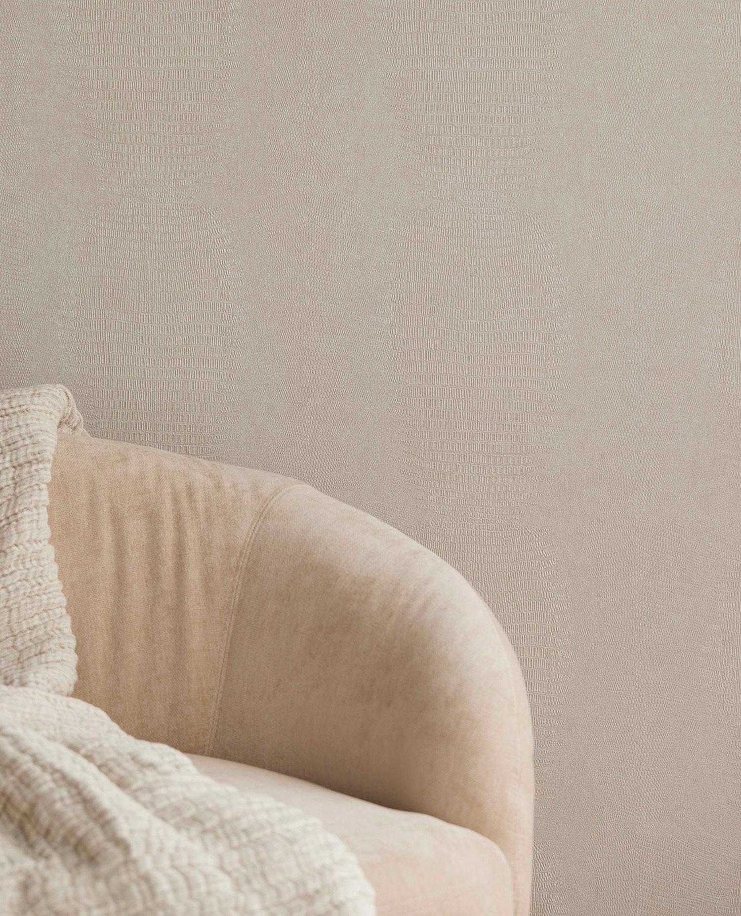 Cremefarbene Vliestapete mit Vinyloberfläche, Tierhautimitat.