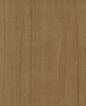 Ockerfarbene Vliestapete mit Vinyloberfläche, Imitation von faltigem, grobem Stoff, metallisch-goldener Halbglanz.