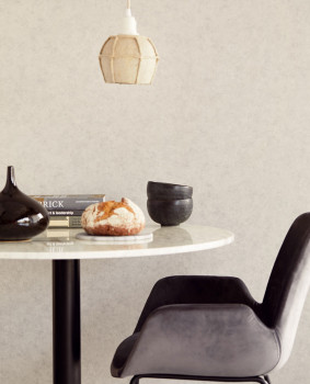 Grau-beige Vliestapete, feiner Halbglanz. Das Innenfoto dient nur zur Veranschaulichung - verschiedene Farben