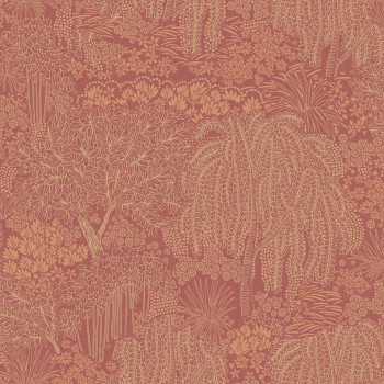 Weinrot-goldene Tapete, Bäume, Blätter, AL26263, Allure, Decoprint