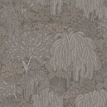 Grau-silberne Tapete, Bäume, Blätter, AL26265, Allure, Decoprint