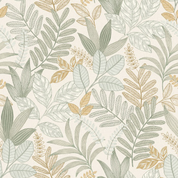 Beigegrüne Tapete mit Blättern, AL26294, Allure, Decoprint