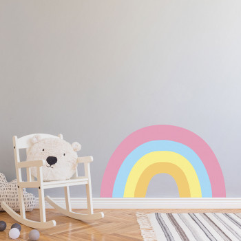Vorgeklebte Wanddekoration aus Vlies - Regenbogen. Die Dekoration hat auf der Rückseite einen Kleber, der durch Auftragen von Wasser aktiviert wird.