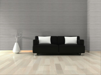 Grob strukturierte Vliestapete mit Vinyl-Oberfläche, grauer Hintergrund, silberne Prägelinien.