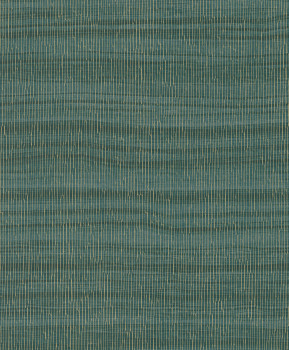Grob strukturierte Vliestapete mit Vinyl-Oberfläche, grüner Hintergrund, goldene Prägelinien.