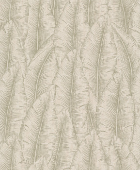 Luxuriöse Vliestapete. Blattmotive in Creme- und Grüntönen auf strukturierter Vliestapete mit Vinyloberfläche.