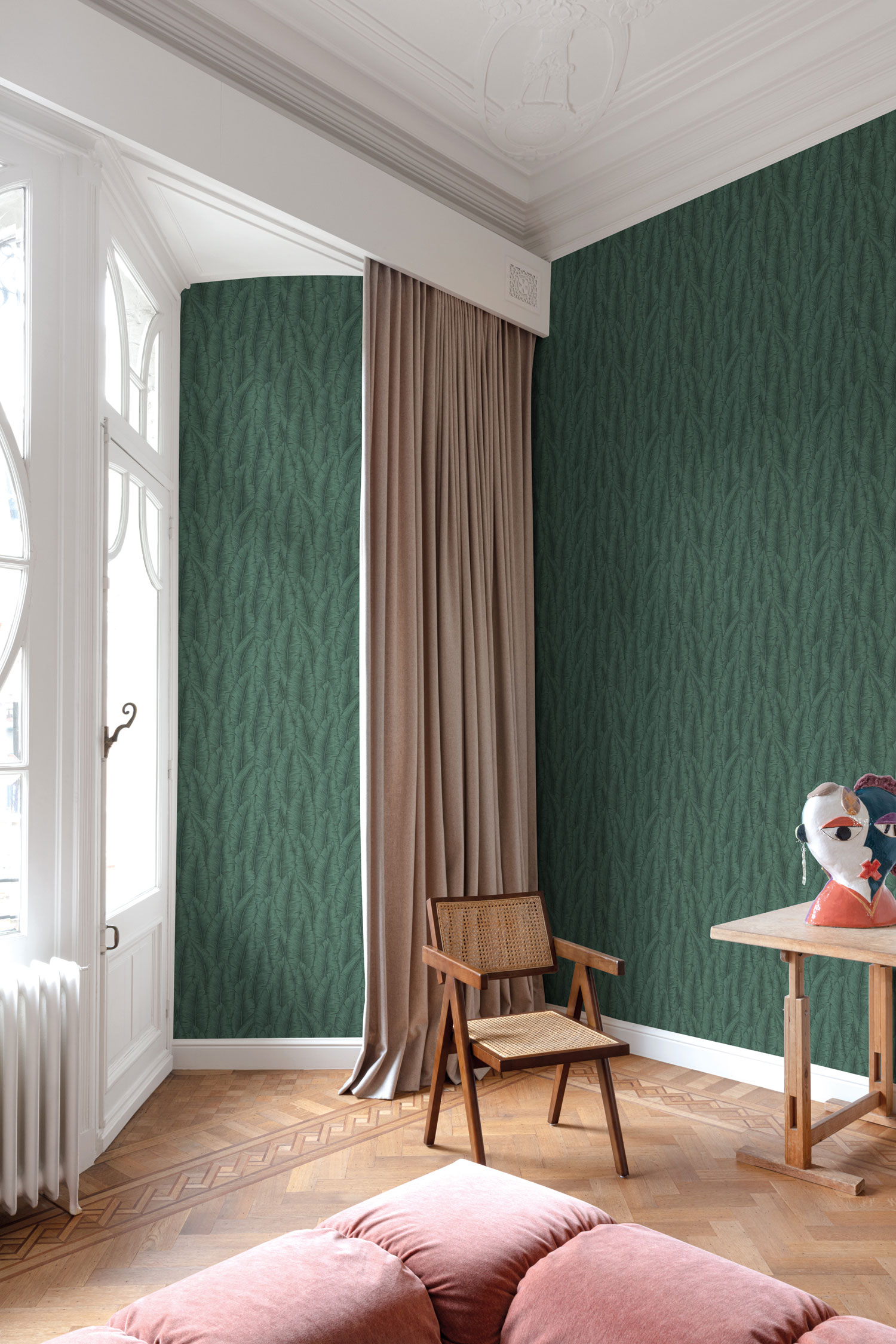 Tapeten mit Blättern und feinen Strukturen aus der Tapetenkollektion Cumaru verleihen Ihrem Interieur einen authentischen, nachhaltigen und dennoch edlen Charakter.