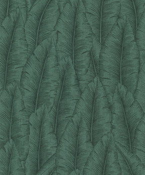 Luxuriöse grüne Vliestapete. Blattmotive auf strukturierter Vliestapete mit Vinyloberfläche.