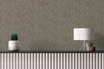 Luxuriöse Vliestapete mit Vinyloberfläche - geprägte Gewebestruktur, Graubrauntöne mit goldenem Halbglanz. Das Foto des Innenraums dient nur zur Veranschaulichung – verschiedene Farben.