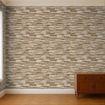 Neben natürlichen Motiven lässt sich die Vavex-Kollektion 2025 von aktuellen Trends im modernen Wohnen inspirieren. Aus diesem Grund haben wir Tapeten mit Imitationen verschiedener Fliesen wie Holz, Stein oder Ziegel beigefügt. Mit diesen Tapeten können Sie spielerisch interessante Kontraste und Effekte an Ihren Wänden schaffen, ohne aufwendige und kostspielige Bauarbeiten durchführen zu müssen.