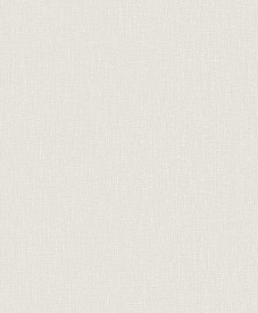 Einfarbige, matte, weißgraue Vliestapete mit Stoffimitationsmuster.
