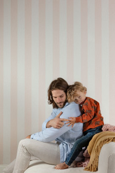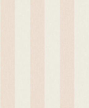 Hellrosa, matte Vliestapete mit beigen Streifen, Textur Stoffimitat.