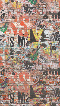 Vlies-Fototapete, Ziegelwand mit Graffiti. Die Tapete hat ein durchgehendes Muster, für eine größere Breite müssen Sie einfach ein weiteres Stück kaufen. 3 Paneele 0,53 x 2,8 m