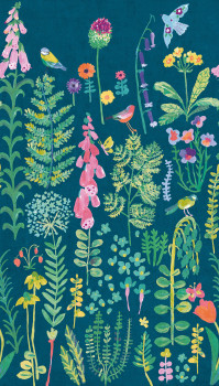 Grüne Vlies-Fototapete, Blumen- und Farnmotive. Die Tapete hat ein durchgehendes Muster, für eine größere Breite müssen Sie einfach ein weiteres Stück kaufen. 3 Paneele 0,53 x 2,8 m
