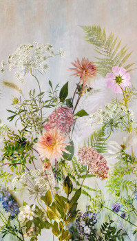 Vlies-Fototapete mit Blumenmuster. Die Tapete hat ein durchgehendes Muster, für eine größere Breite müssen Sie einfach ein weiteres Stück kaufen. 3 Paneele 0,53 x 2,8 m
