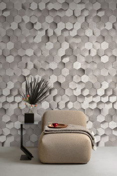 Vlies-Fototapete, 3D-Motive aus Sechsecken. Die Tapete hat ein durchgehendes Muster, für eine größere Breite müssen Sie einfach ein weiteres Stück kaufen. 3 Paneele 0,53 x 2,8 m