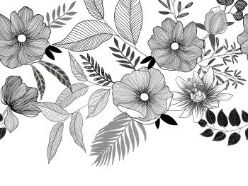 Vlies-Fototapete mit Blumenmuster. Die Tapete hat ein durchgehendes Muster, für eine größere Breite müssen Sie einfach ein weiteres Stück kaufen. 7 Paneele 0,53 x 2,8 m
