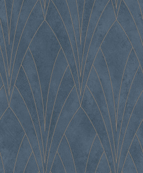 Marineblaue Vliestapete mit Vinyloberfläche, Muster im Art-Déco-Stil, metallisch glänzende Metallic-Linien.