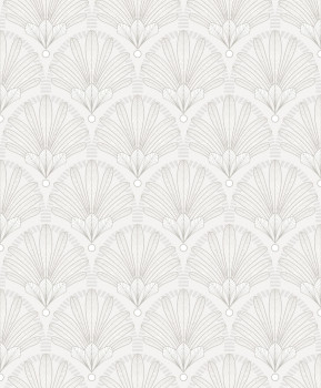 Vliestapete mit Vinyloberfläche, weiß-grau-silbernes Muster im Art-Déco-Stil.