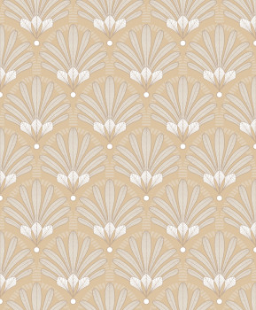 Ockerfarbene Vliestapete mit Vinyloberfläche, creme-silbernes Art-Déco-Muster.