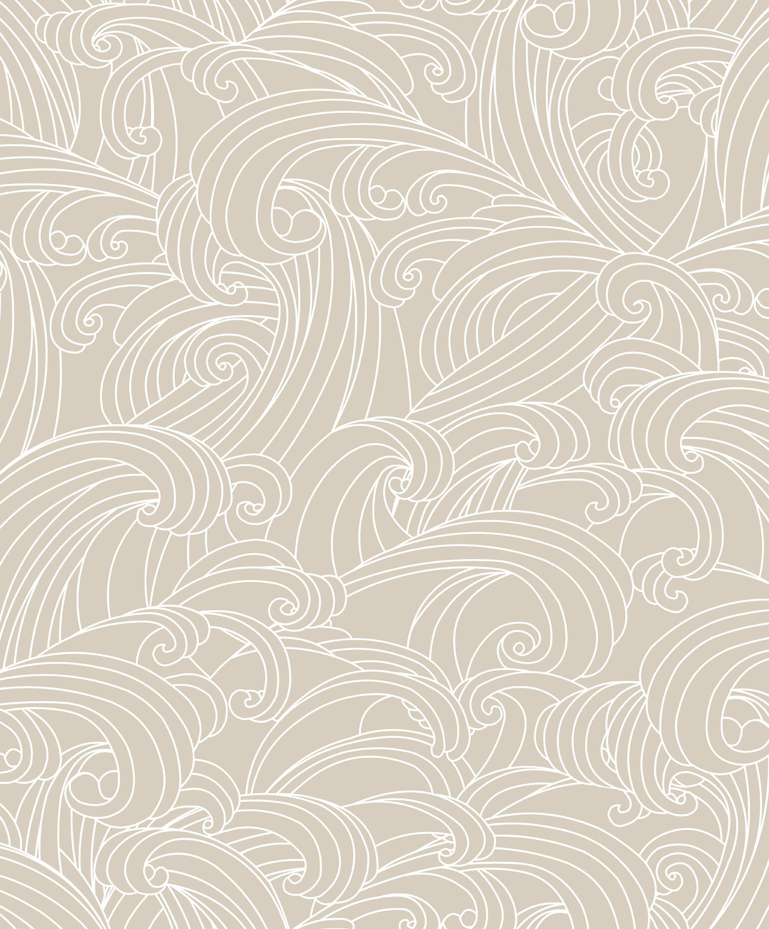 Beigefarbene geprägte Vliestapete mit Vinyloberfläche, glatte, halbglänzende Wellenkonturen.