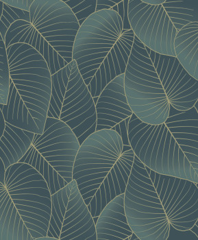 Grüne und goldene Tapete mit Blättern, B21204 Botanique Ugepa