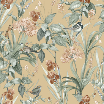 Beige Tapete mit Blumen und Vögeln, M64792D, Botanique, Ugepa