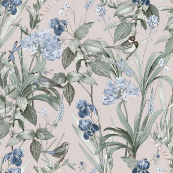 Rosa Tapete mit Blumen und Vögeln M64793D, Botanique, Ugepa