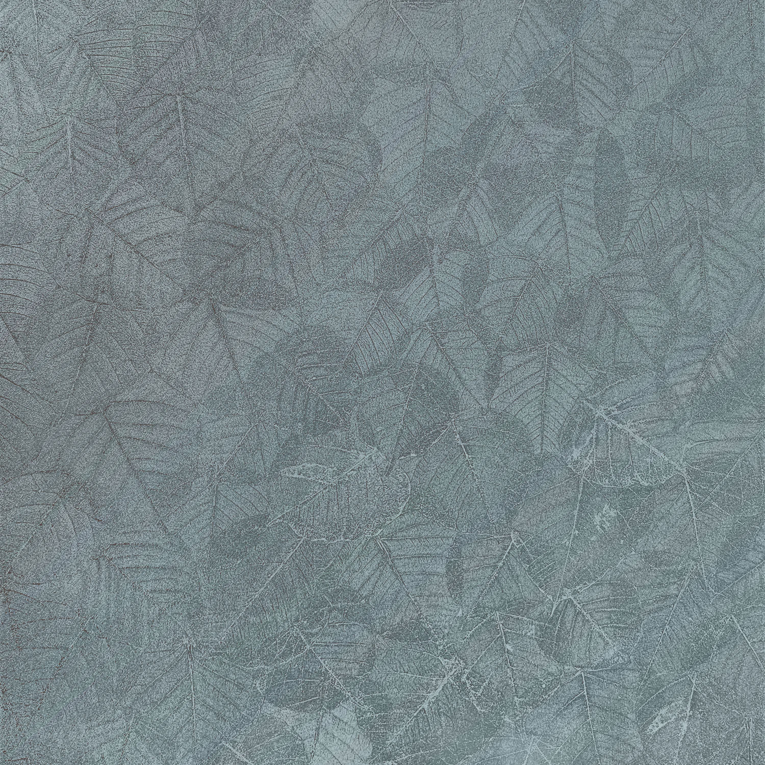 Halbglänzende, leicht geprägte, grüne Vliestapete mit Blättern.