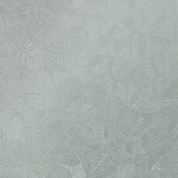 Halbglänzende, leicht geprägte, hellgrüne Vliestapete mit Blättern.