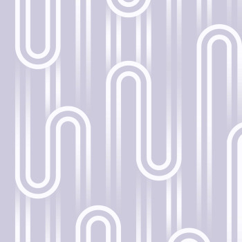 Glatte lavendelfarbene Retro-Vliestapete mit geometrischem Bogenmuster.