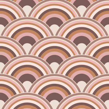 Glatte Vliestapete, Regenbogenmotiv in den Farbtönen Rosa, Burgund und Terrakotta.
