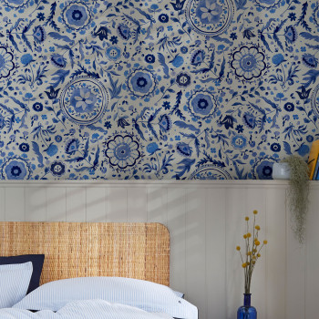 Blau-weiße Blumentapete, 120881, Joules, Graham&Brown