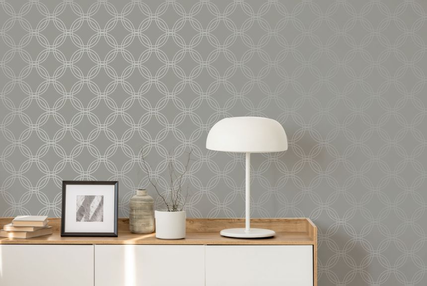 Grau-silberne Tapete mit geometrischen Mustern, 120140, Vavex 2025