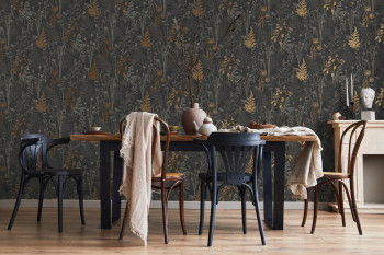 Schwarze Tapete, Blumen, Blätter, 120718, Vavex 2025