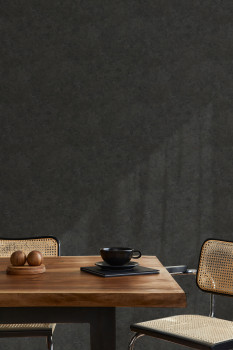 Schwarze, strukturierte Vliestapete, Stuckimitation.
