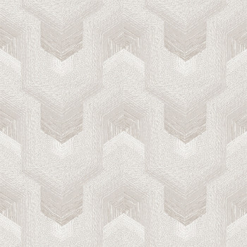 Grau-weiße Vliestapete mit Vinyloberfläche, effektvolles geometrisches Muster mit Perlmuttreflexen, textile Struktur.
