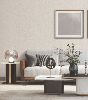 Elegante strukturierte cremefarbene Vliestapete mit Vinyloberfläche, metallischen Punkten.