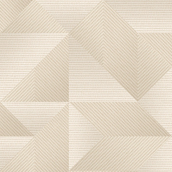 Sanft geprägte, halbglänzende beige Vliestapete mit Vinyloberfläche, geometrisches 3D-Muster.