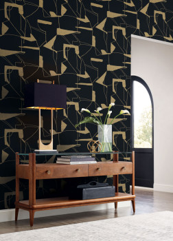Schwarz-goldene geometrische Tapete, MD7115, Modern Metals, York