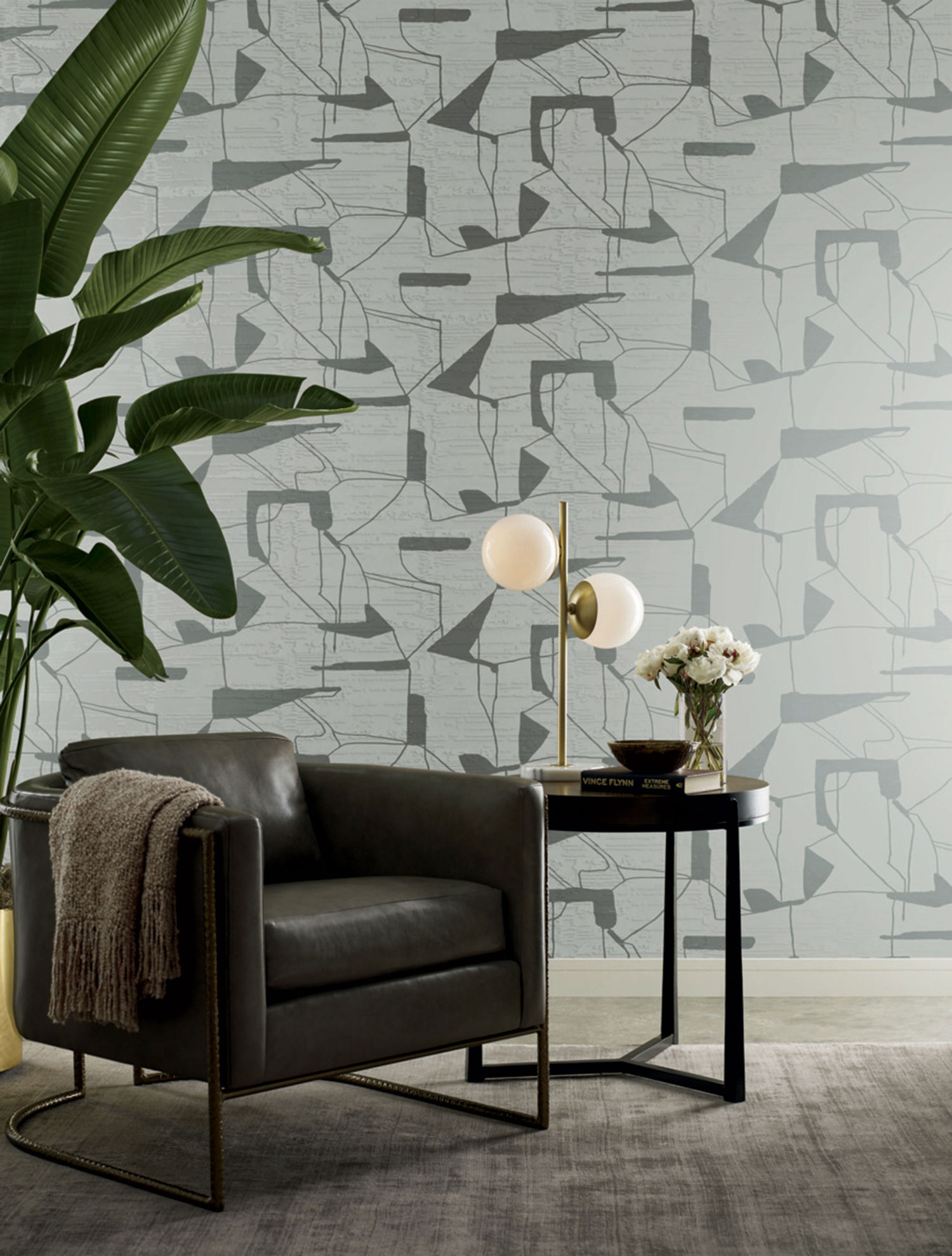 Geometrische Tapete in Grau und Silber, MD7111, Modern Metals, York