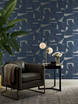 Geometrische Tapete in Blau und Silber, MD7112, Modern Metals, York