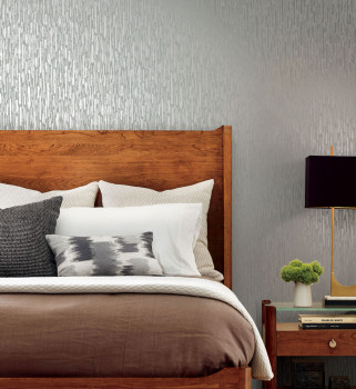 Vliestapete, blaugrauer glatter Hintergrund, geprägte Silberstreifen.