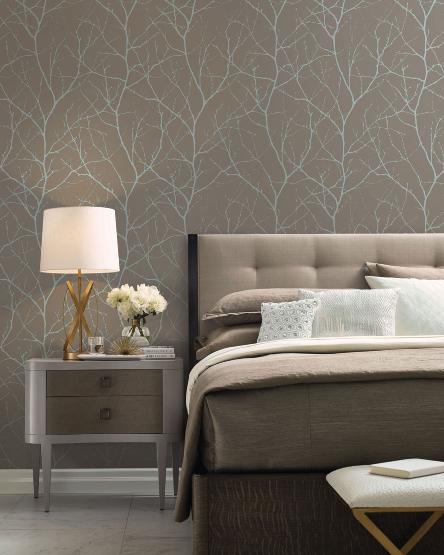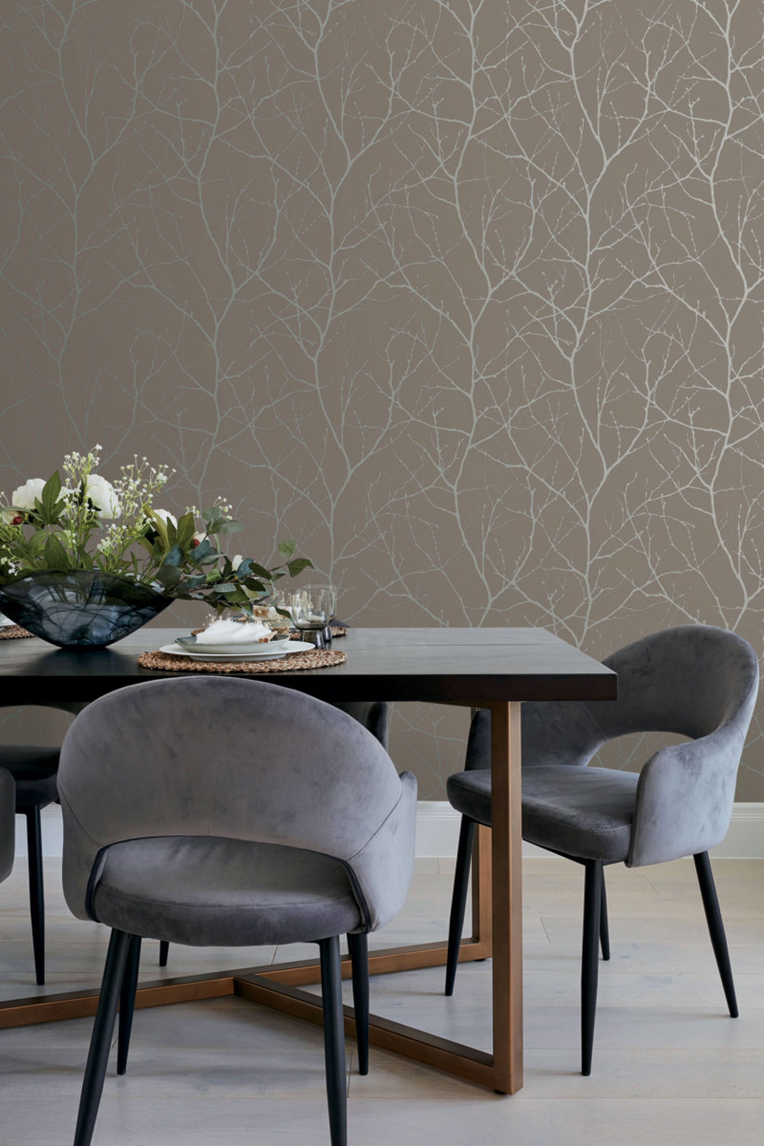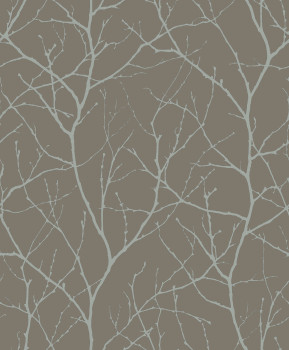 Braun-silberne Tapete, Baumzweige, MD7121, Modern Metals, York