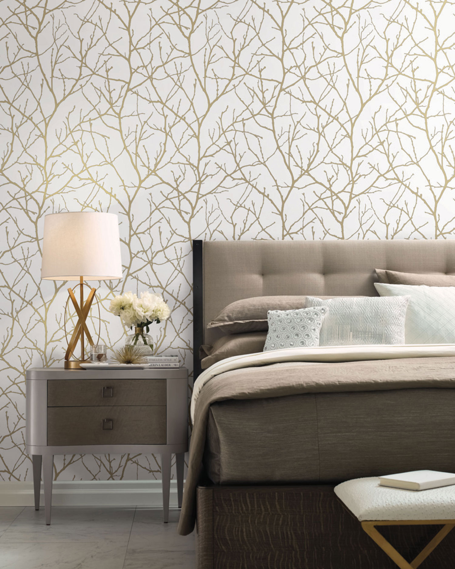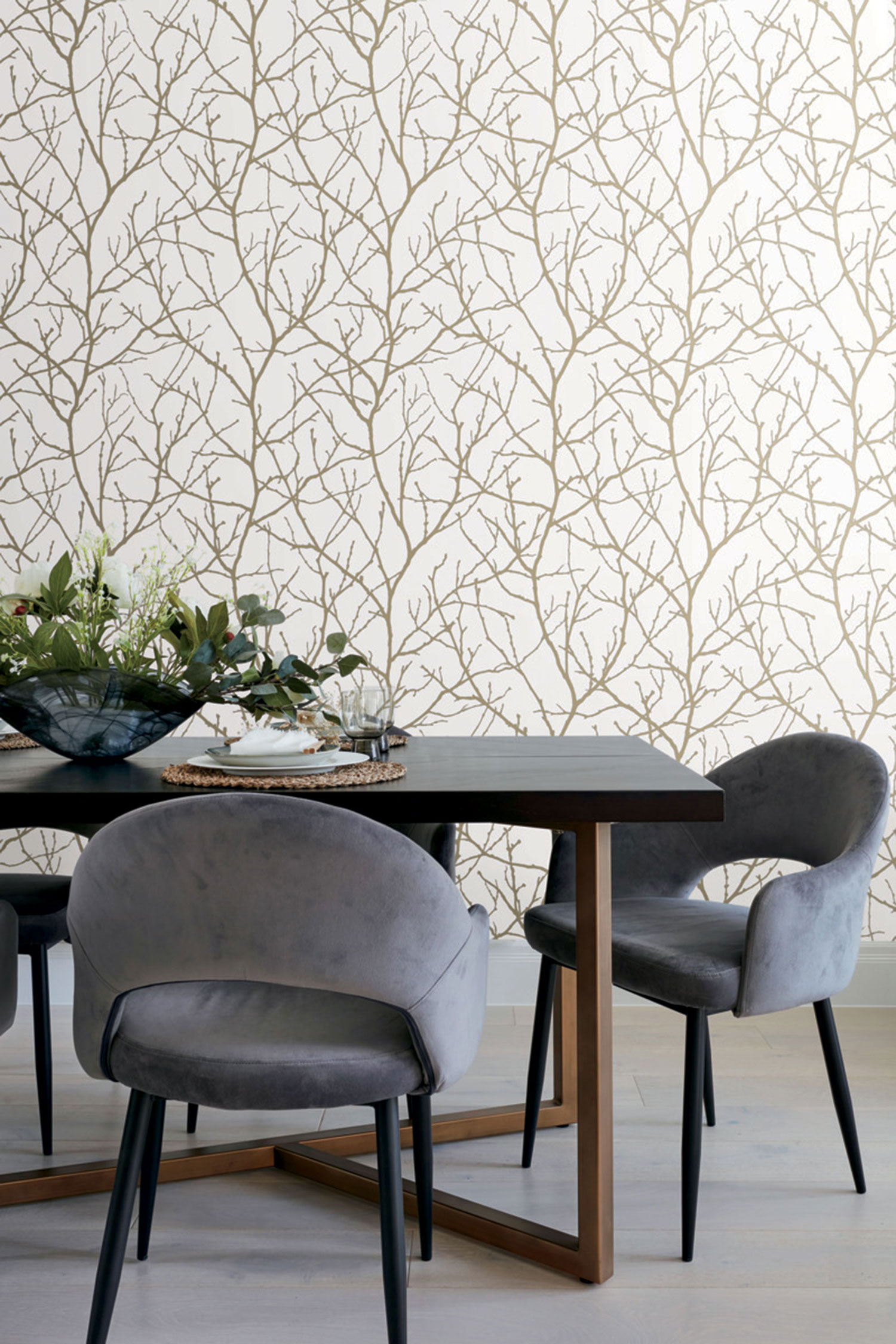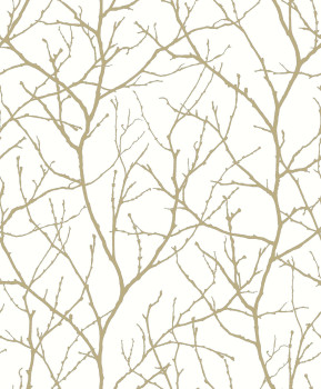 Weiß-goldene Tapete, Baumzweige, MD7126, Modern Metals, York