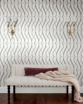 Weiße und silberne geometrische Tapete, MD7173, Modern Metals, York